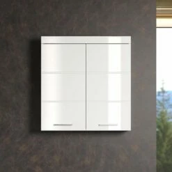 Meuble Haut Gris Moderne – Amanda : Facile D’entretien, 2 Portes, 2 étagères
