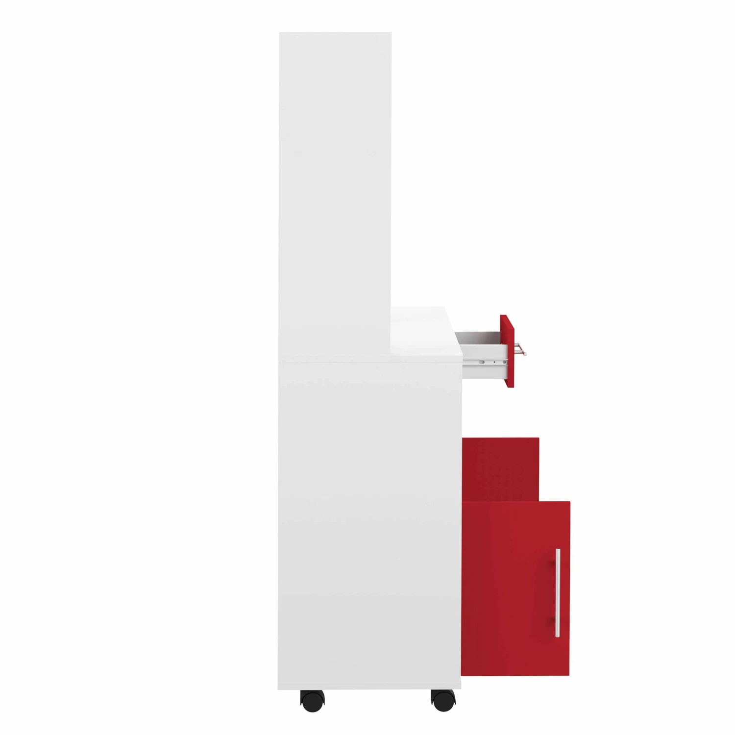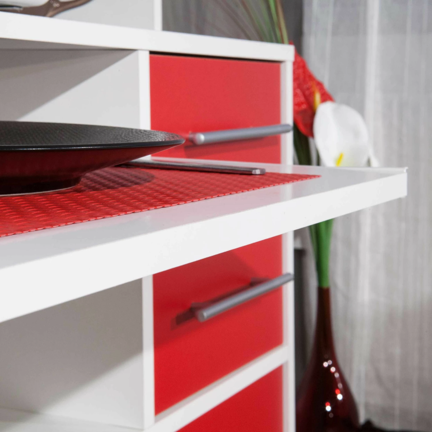 L’armoire de cuisine Cesar est réalisée en panneaux de particules. Les portes et tiroirs sont dotés d’une couleur rouge. Elle est également disponible en d’autres coloris.