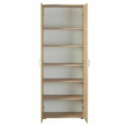 Organisez votre débarras à l’aide de cette armoire de rangement pratique de la collection Spacio. Réalisée en panneaux de particules avec décor en chêne gris, elle est équipée de 2 portes et de 5 tablettes.