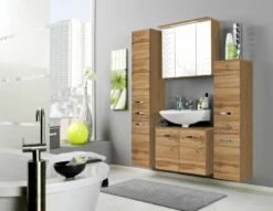Armoire De Toilette Bobbi 80cm Modèle 1 3 Portes & Eclairage LED – Chêne