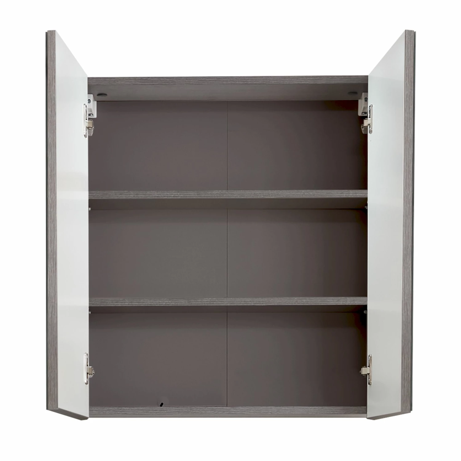 La durabilité unique de cette armoire de toilette est garantie par l’utilisation de verre miroir et de mélamine de haute qualité. La carcasse couleur argent fumé dans le décor Sardegna ajoute une touche d’élégance et fait de cette armoire de toilette un véritable accroche-regard dans toute salle de bains.