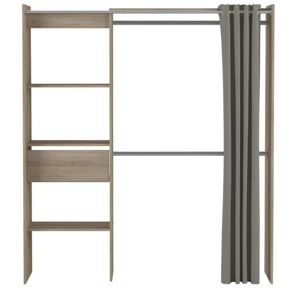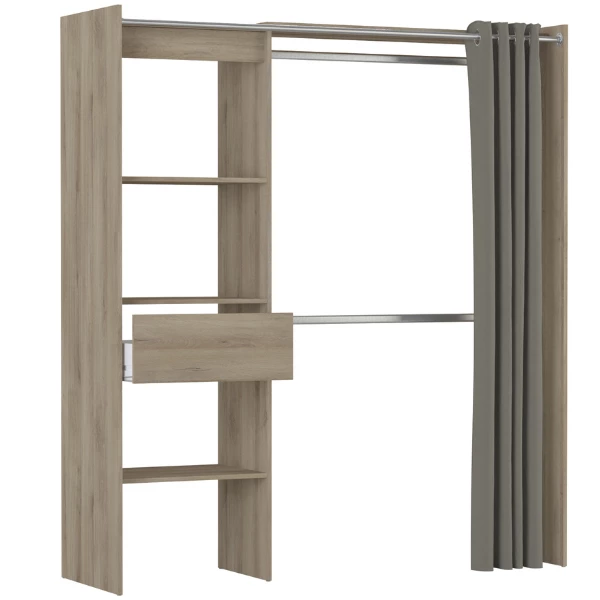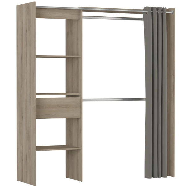 Armoire Boutique est grâce à sa conception neutre facile à intégrer dans presque chaque intérieur. Avec ses 3 étagères, tiroir et 2 tringles cette armoire offre un bon nombre de possibiltés de rangement pour votre garderobe personnelle. Le rideau pratique peut être refermé après le choix de votre tenue pour une impression plus rangée. Cette armoire de 114 cm s’adapte facilement à de nombreuses pièces donné qu’elle est extensible jusqu’à 168 cm. N’importe si vous souhaitez un dressing, une armoire encastrée ou une armoire ouverte ordinaire, avec armoire Boutique tout cela est possible! Vis et chevilles pour montage mural non-inclus.