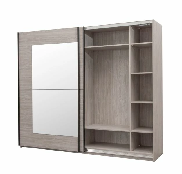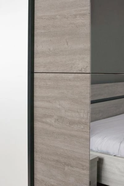 Cette armoire n’a pas seulement une belle apparence mais elle est aussi très pratique. Doté de deux portes et d’une longueur de 250 cm, vous disposez d’un espace de rangement suffisant pour tous vos vêtements. À l’intérieur, l’armoire comporte douze étagères et une tringle à vêtements. Les portes sont toutes deux coulissantes et équipées d’un grand miroir. Super pratique pour vérifier sa tenue le matin avant de partir.