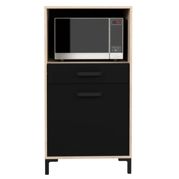 Le meuble Ă micro-ondes Felicity est idĂ©al pour une utilisation dans une petite cuisine. Grâce Ă ce meuble, vous pouvez utiliser efficacement l’espace oĂą se trouve votre micro-ondes comme espace de rangement pour les casseroles, les poĂŞles, les serviettes, etc. Vous pouvez installer votre micro-ondes dans le compartiment ouvert, ce qui vous permet de gagner de la place sur votre plan de travail. Il y a un tiroir et une porte, derrière laquelle se trouve un compartiment de rangement spacieux avec une Ă©tagère.