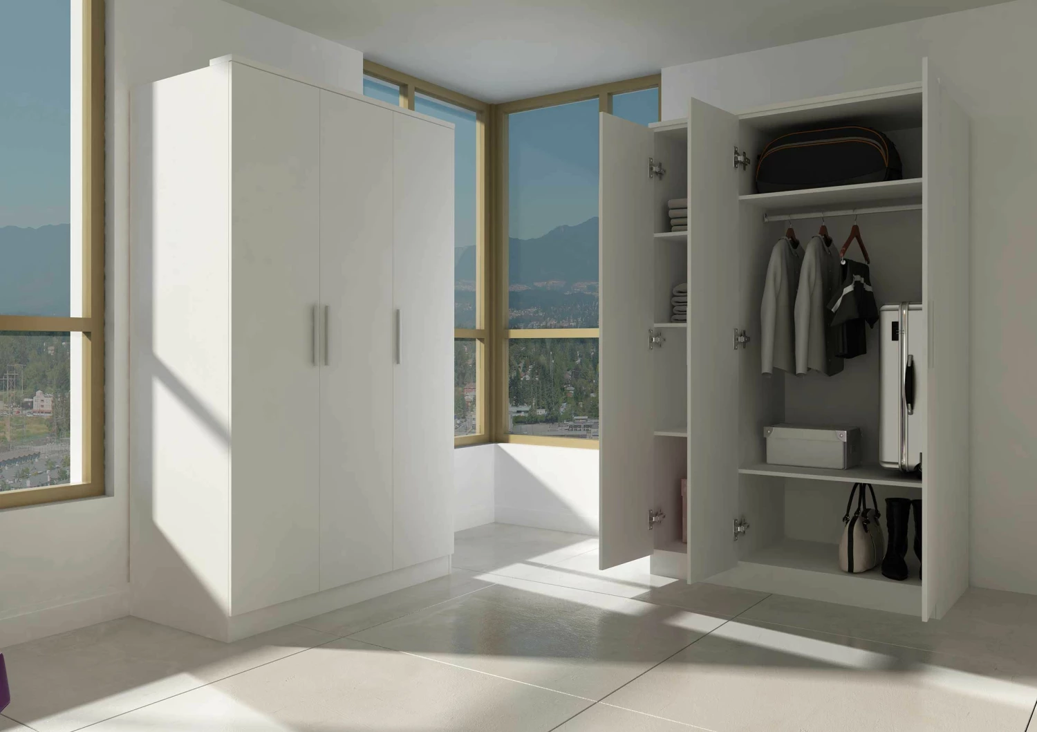 Dotées d’un design neutre, les garde-robes de la collection Ramos s’intègrent dans toutes les chambres. Cette armoire blanche à 3 portes vous offre assez de place pour ranger tous vos vêtements. Cette garde-robe comprend une tringle, 3 petites et 2 larges tablettes. Petit conseil : combinez la garde-robe Ramos avec le surmeuble assorti afin d’optimiser les rangements dans votre chambre.