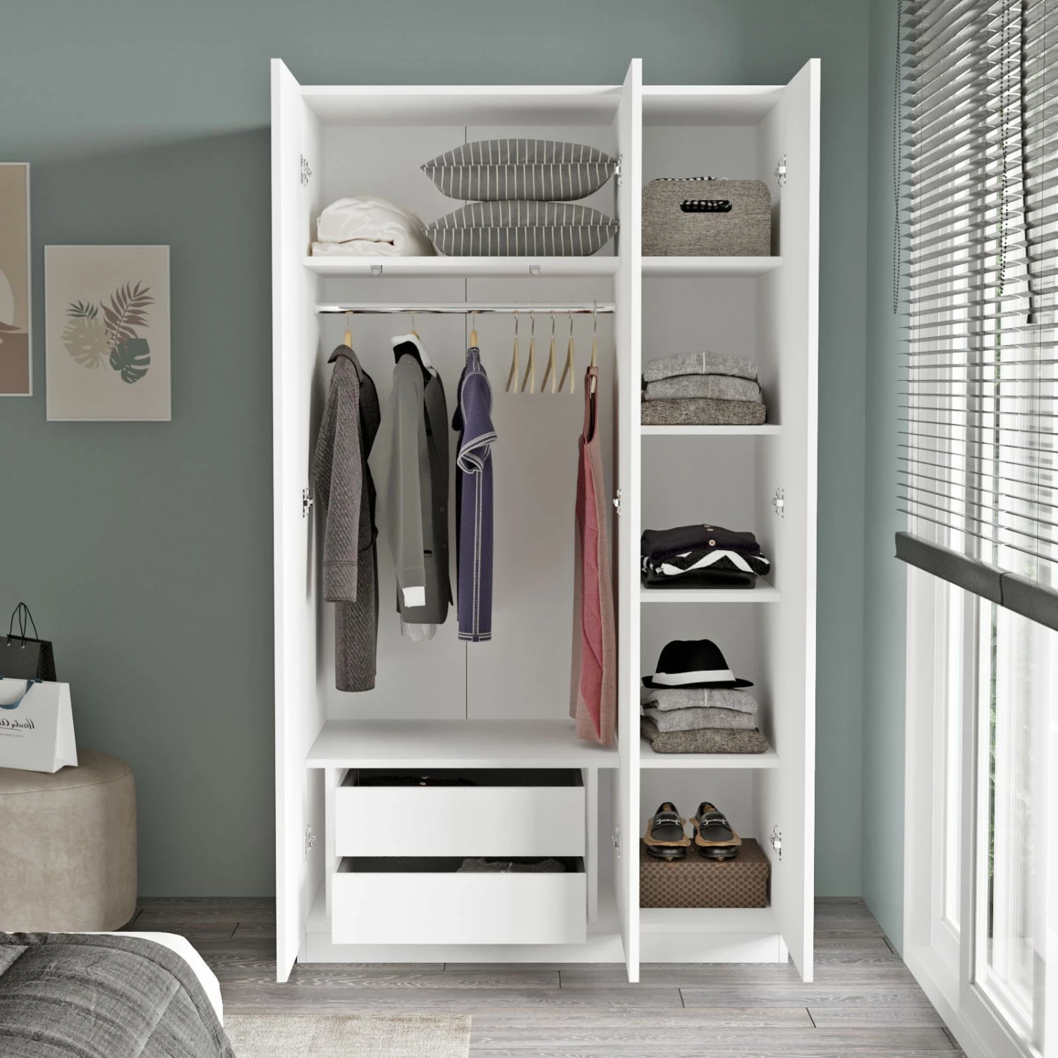 Vous en avez assez du désordre dans votre maison ? Vous cherchez une solution pratique et élégante pour organiser vos affaires ? Cette armoire n’est pas un meuble ordinaire, elle est bien conçue, robuste et fonctionnelle, ce qui en fait le complément idéal de n’importe quelle maison. Que vous viviez dans un petit appartement ou dans une maison spacieuse, cette armoire s’intégrera parfaitement dans n’importe quel espace.L’une des principales caractéristiques de cette armoire est sa construction. Fabriquée à partir de panneaux de particules mélaminés à 100 %, elle garantit une durabilité et une performance à long terme. L’épaisseur de 18 mm du panneau renforce sa solidité, ce qui en fait une solution de rangement fiable pour vos vêtements, accessoires et autres effets personnels.Avec des dimensions de 103,8 cm de largeur, 183,8 cm de hauteur et 50 cm de profondeur, cette armoire offre un espace de rangement suffisant pour répondre à tous vos besoins. Que vous ayez une vaste collection de vêtements ou que vous souhaitiez ranger d’autres articles, cette armoire offre suffisamment d’espace pour que tout soit organisé et facilement accessible.L’armoire est d’un blanc immaculé, ce qui ajoute une touche d’élégance et de sophistication à votre décoration d’intérieur. La couleur blanche ne rend pas seulement l’armoire polyvalente, mais elle apporte également un sentiment de fraîcheur et de propreté à votre espace. Elle s’intègre sans effort à tous les meubles existants et complète une variété de styles d’intérieur.Outre son attrait visuel, cette armoire offre également de multiples avantages. Tout d’abord, sa fonctionnalité est inégalée. Elle comporte un compartiment principal spacieux avec un rail de suspension, qui vous permet de suspendre vos vêtements de manière ordonnée. Elle comprend également plusieurs étagères, où vous pouvez ranger des vêtements pliés, des chaussures, des sacs ou tout autre article que vous souhaitez. Cette armoire est conçue pour maximiser l’efficacité du rangement, ce qui vous permet de tirer le meilleur parti de l’espace disponible.Deuxièmement, la construction robuste de cette armoire garantit qu’elle résistera à l’épreuve du temps. Elle peut résister à une utilisation quotidienne, ce qui la rend adaptée aux ménages les plus occupés. Le revêtement en mélamine renforce non seulement sa solidité, mais le rend également résistant aux rayures, aux taches et aux dégâts des eaux. Cette caractéristique garantit que votre armoire conservera son aspect impeccable pendant des années.Enfin, l’assemblage de cette armoire est simple et sans problème. Elle est livrée avec un manuel d’instructions complet et toute la quincaillerie nécessaire, ce qui permet à n’importe qui de l’installer facilement. Il n’est pas nécessaire d’être un expert pour avoir une belle armoire fonctionnelle chez soi.En résumé, cette armoire est la solution parfaite pour rehausser votre image de marque et votre image de marque.