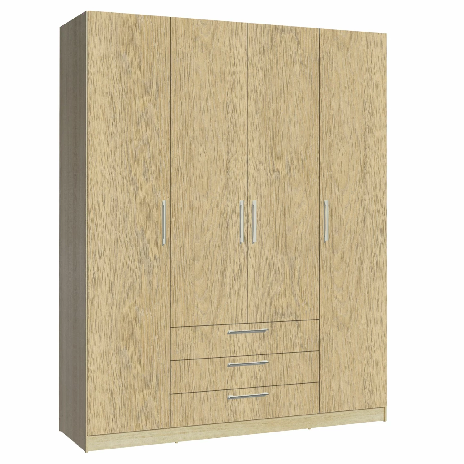 Pour un aménagement de la pièce organisé et agréable, l’armoire Tarn est le bon choix. L’armoire est fabriquée en aggloméré décor de chêne et vous offre diverses possibilités de rangement. Elle comporte deux grandes portes de chaque côté et deux portes plus petites à l’intérieur. Il y a trois tiroirs de rangement sous les petites portes. Il existe également une tringle à vêtements pratique derrière les deux petites portes. Tout autour, les étagères constituent des compartiments de rangement pratiques. Vous pouvez donc facilement ranger tous vos vêtements et accessoires, de différents volumes, dans cette armoire.