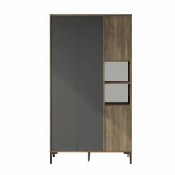 Armoire Livia 3 Portes Tournantes, 1 Tringle, 4 étagères Et 1 Tiroir-chêne Kronberg/noir Mat