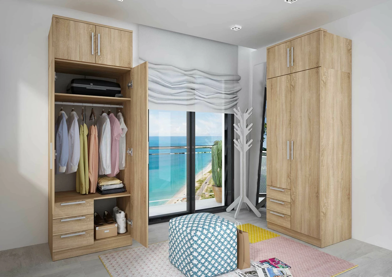 Maximisez vos rangements à l’aide de ce surmeuble à 2 portes. Il s’installe au-dessus de la garde-robe Ramos à 2 portes.