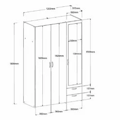Le spacieux buffet Felicity s’intègre à divers styles de décoration intérieure, du moderne au classique en passant par l’industriel. La combinaison du décor en chêne et des portes noires mates donne à l’armoire un design très tendance. Ce buffet offre également de nombreuses possibilités de rangement. Derrière les quatre portes se trouve une étagère chacune. Entre les deux, il y a un compartiment ouvert avec un tiroir spacieux en dessous.